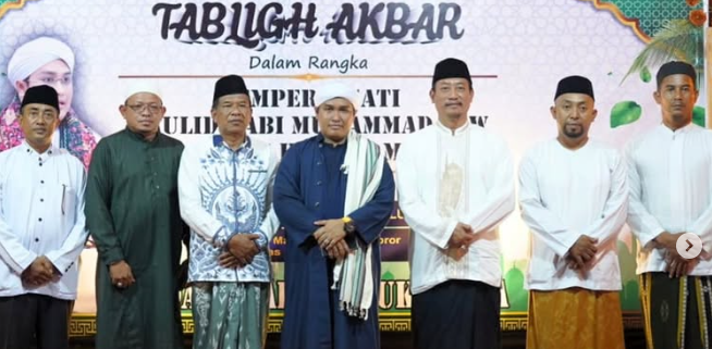 Sukamara, 14 Oktober 2025 — Dalam suasana penuh khidmat dan semangat keagamaan, Bupati Sukamara H. Masduki, S.T., menghadiri Tabliqh Akbar dalam rangka memperingati Maulid Nabi Muhammad SAW 1447 Hijriyah/2025 Masehi yang diselenggarakan di halaman MIS Darul Arqam, Kelurahan Padang, pada Selasa malam pukul 19.30 WIB.