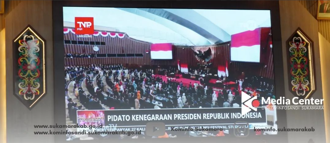 Pj. Bupati Sukamara Rendy Lesmana, S.P.,MM.,C.R.B.C. mengikuti acara pidato kenegaraan Presidan RI dalam rangka sidang tahunan MPR RI dan sidang bersama DPR RI dan DPD RI secara virtual pada hari jum’at tanggal (16/08/2024) di Ruang Sidang DPRD Sukamara di hadiri Ketua dan Wakil Ketua DPRD beserta Anggota, Forkopimda Sukamara, Plh. Sekda Sukamara, Staf Ahli Bupati Sukamara, Asisten Sekda Sukamara, Kepala OPD Sukamara, Kepala Instansi Vertikal Sukamara, Camat se Kabupaten Sukamara dan tamu undangan.